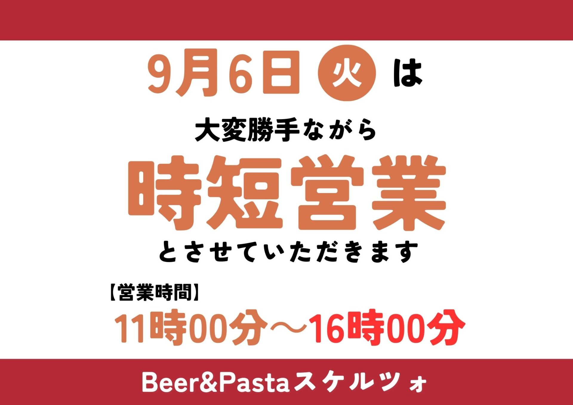 営業情報 UPDATE2025.08.15 【9/6】営業時間の変更につきまして 大変勝手ながら9月6日(土曜日)の営業時間を変更いたします。 ディナータイムの営業をとりやめ、16時00分で営業を終了いたします。 ご不便をおかけしますがどうぞよろしくお願いいたします。