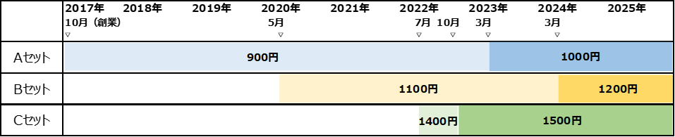※今回価格が変更になるのはAセットのみです。(Bセット・Cセットは値上げしません)